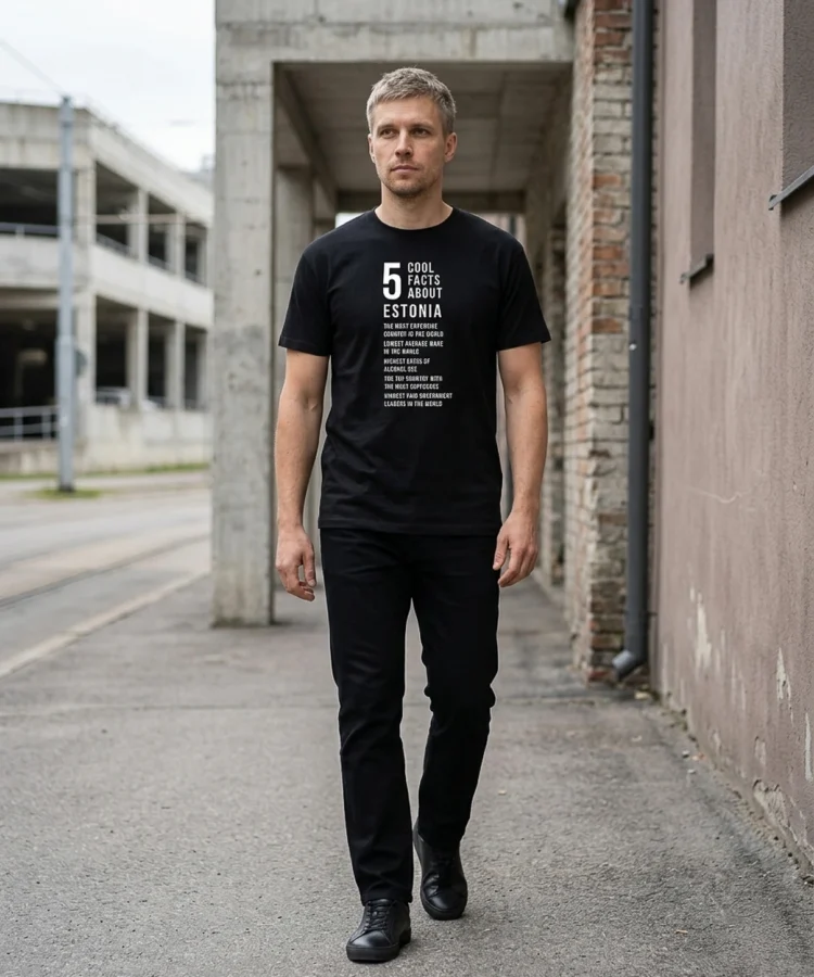 5 Cool Facts About Estonia — faktid särgil ei ole päris faktid ja see on kogu mõte. Eesti-humor oma parimas vormis: kuiv, absurdne ja piisavalt tõene, et sa ei tea, kas nutta või naerda.