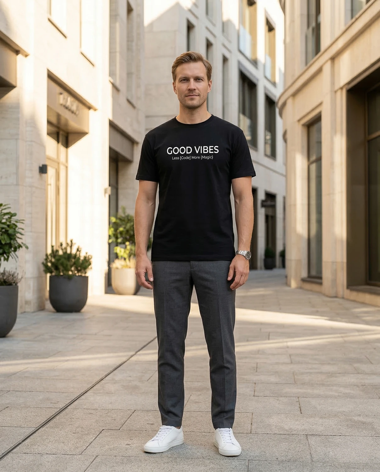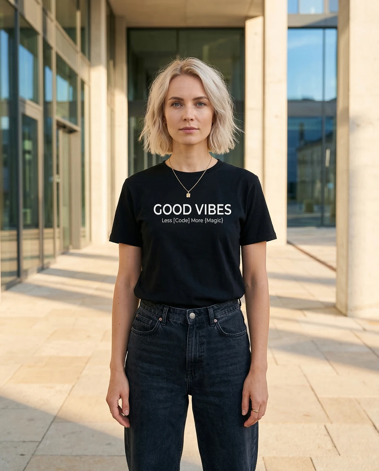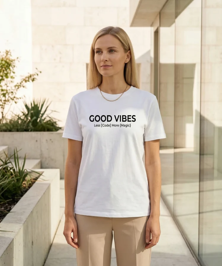 GOOD VIBES — Less [Code] More {Magic}. Loogelised sulud, kandiline sulg ja üks selge sõnum: mõnikord on magic olulisem kui logic. See särk räägib keelt, mida kontor mõistab.