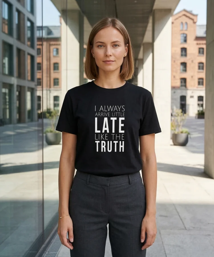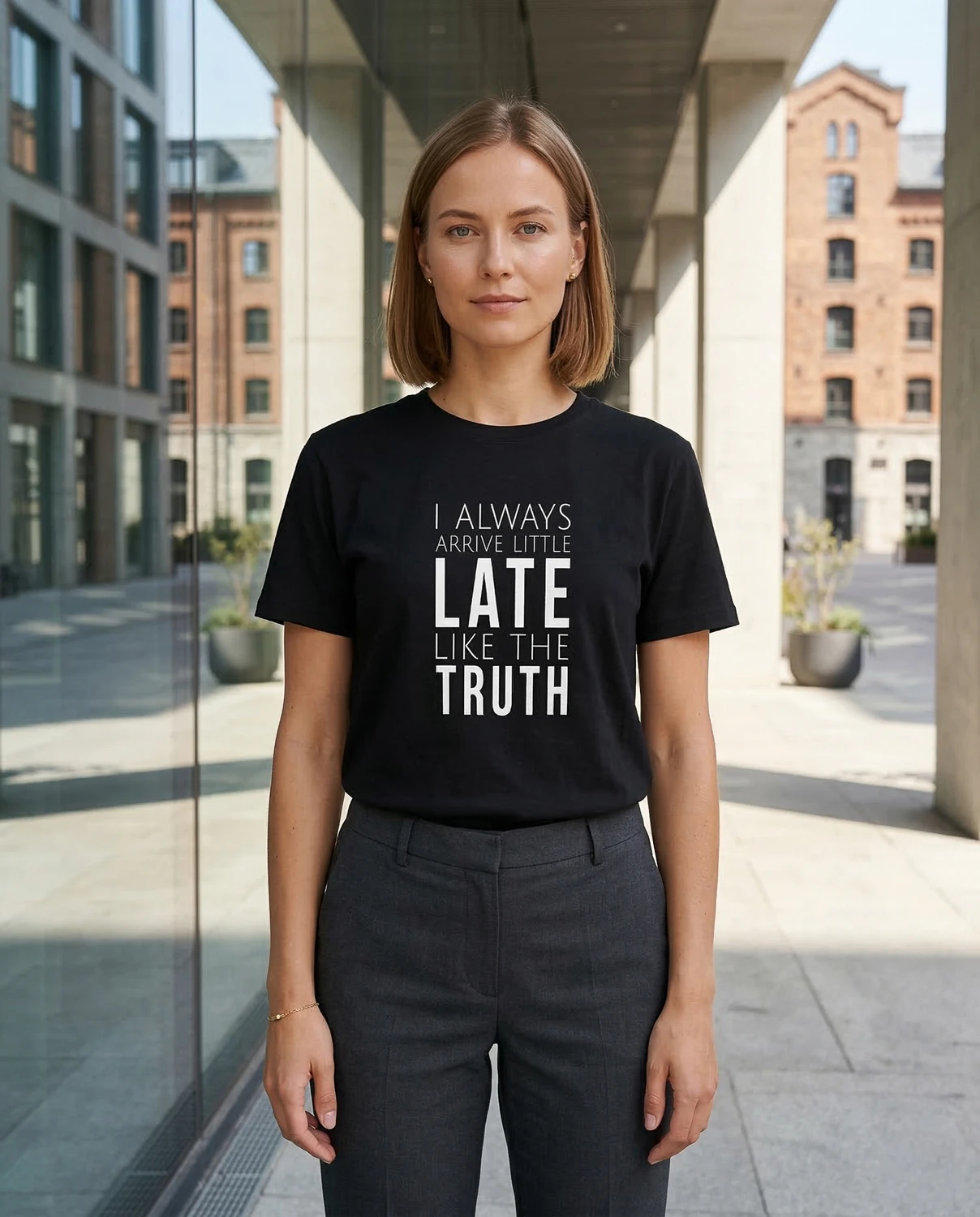 I Always Arrive Little Late Like The Truth — hilinemise filosoofia ühe lausega. Tõde ei jookse kuhugi, tõde saabub siis, kui ta saabub. Sina ka.