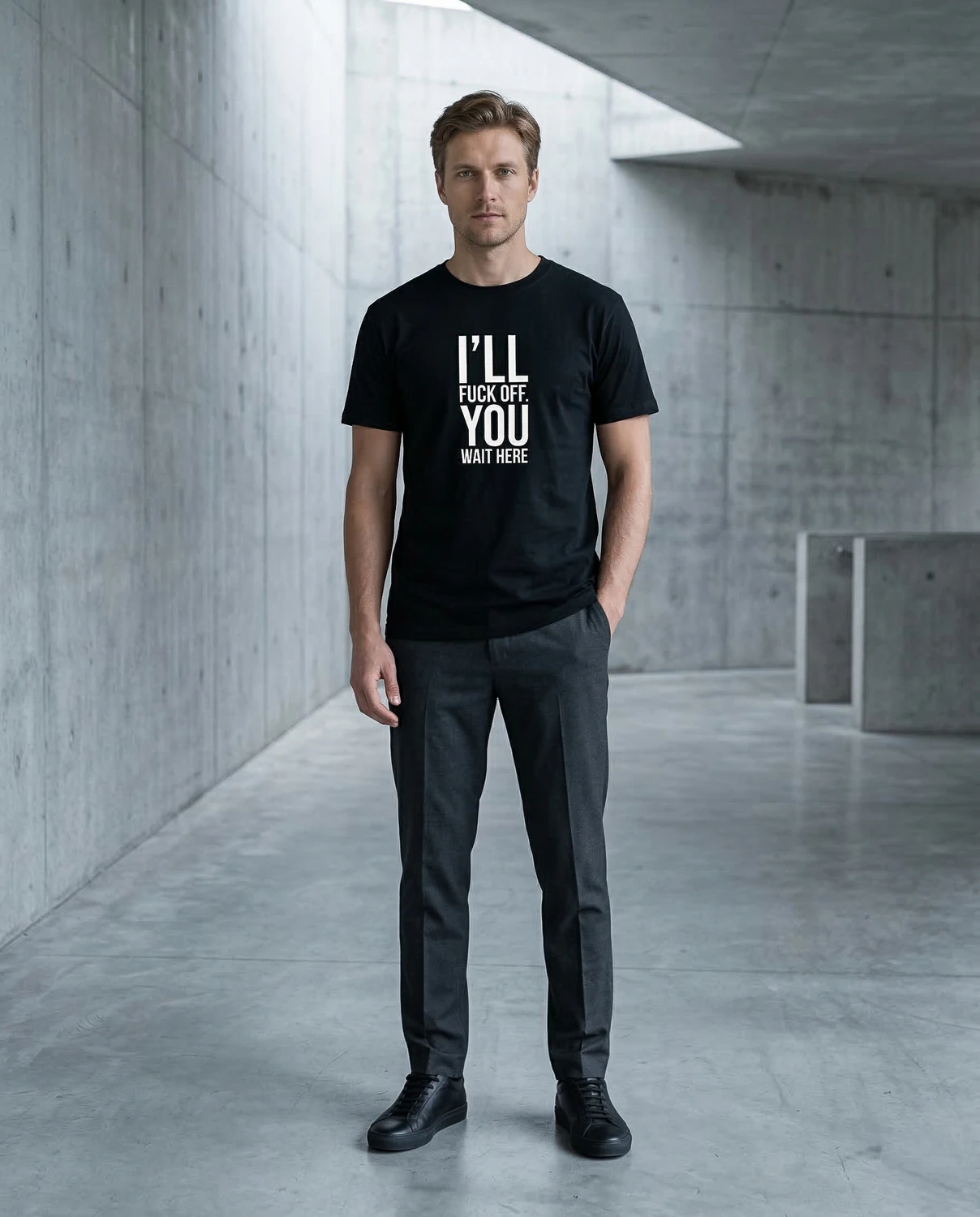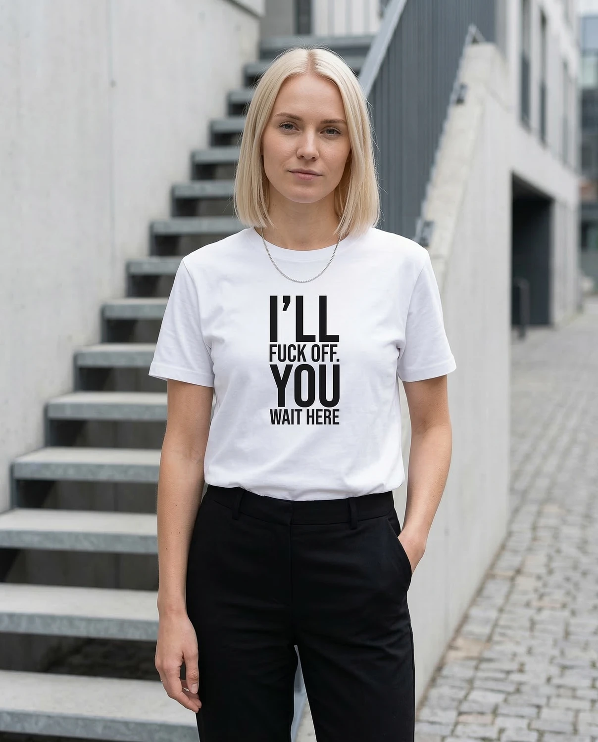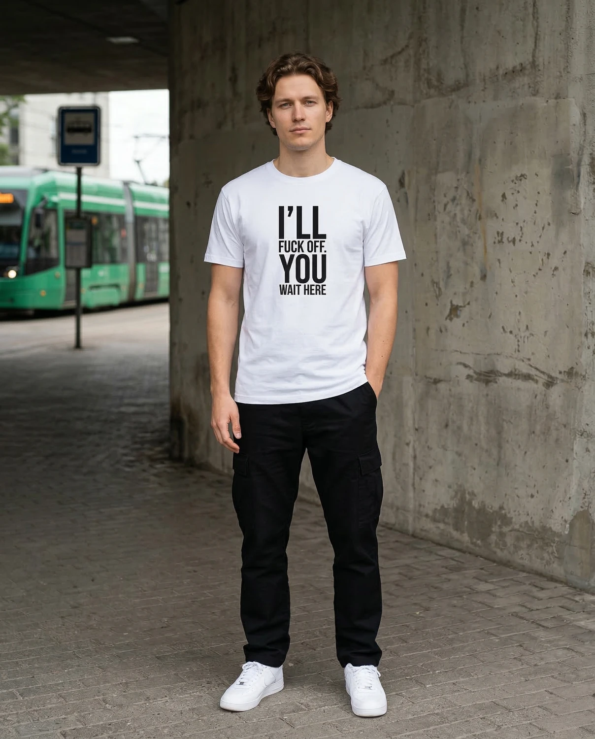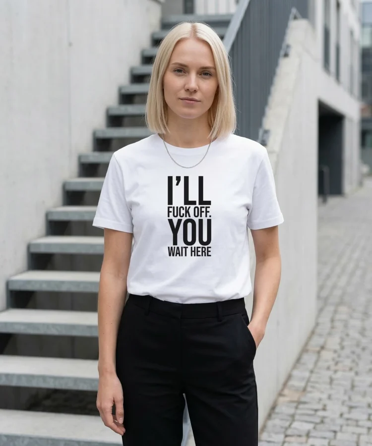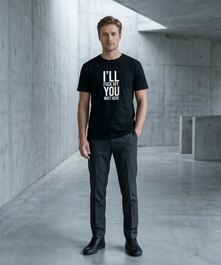 I’LL FUCK OFF. YOU WAIT HERE. — sõnum on selge ja keerutamist ei ole. See särk räägib sinu eest hetkel, mil sa ise ei viitsi enam diplomaatiline olla. Piirid paigas, tempo sinu valida.